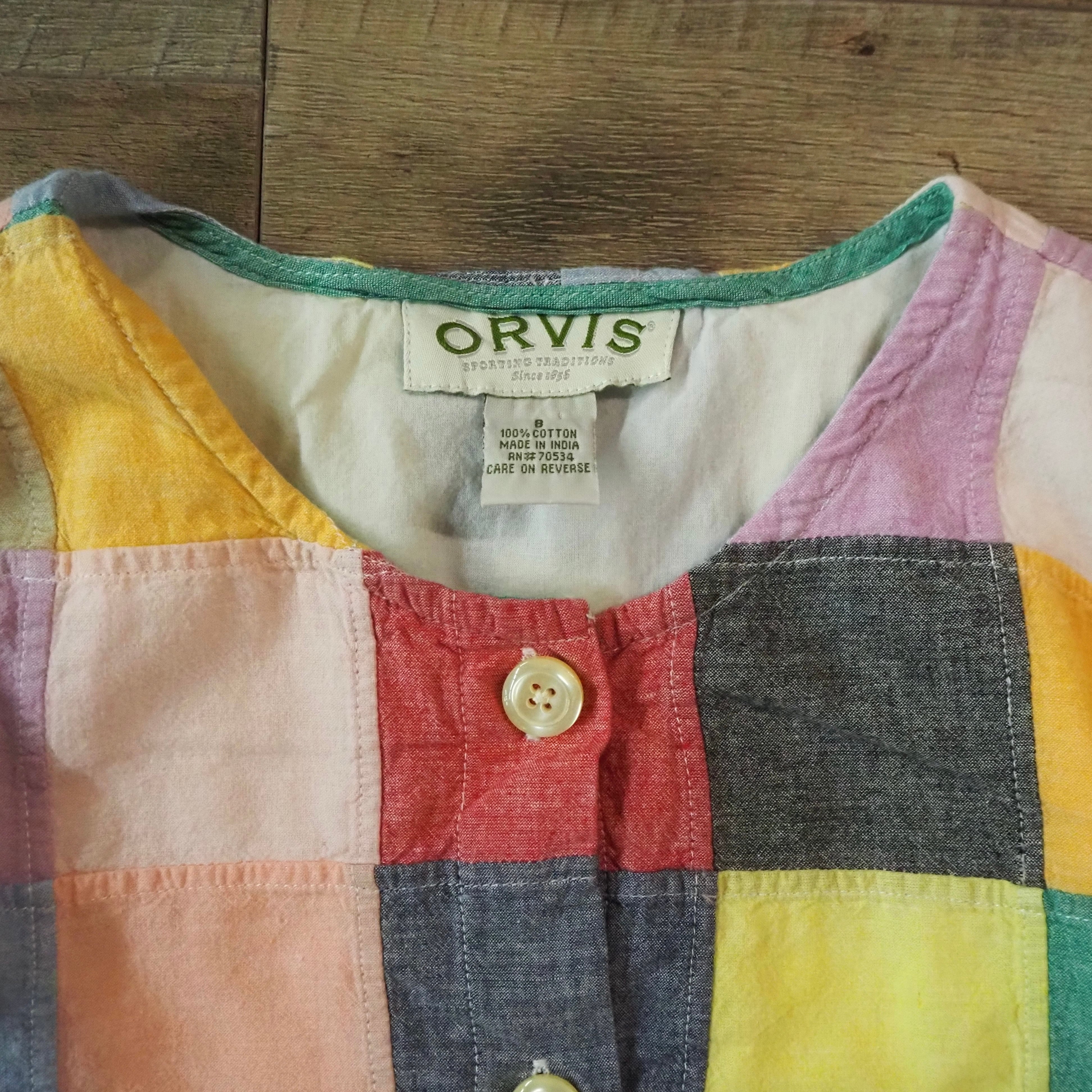 90s ORVIS PATCHWORK COLLARLESS SHIRT