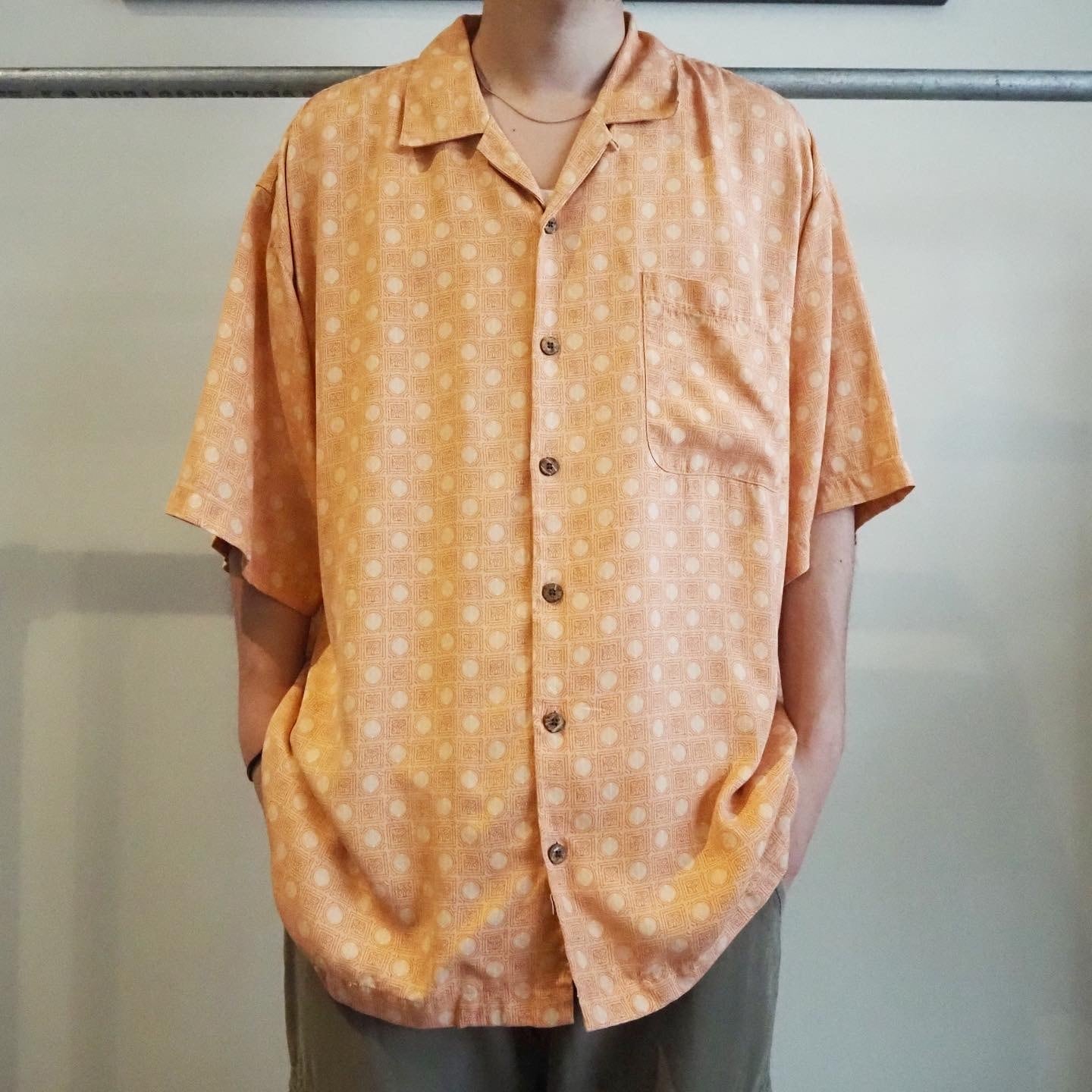 サーモンピンクのサマーシャツです
